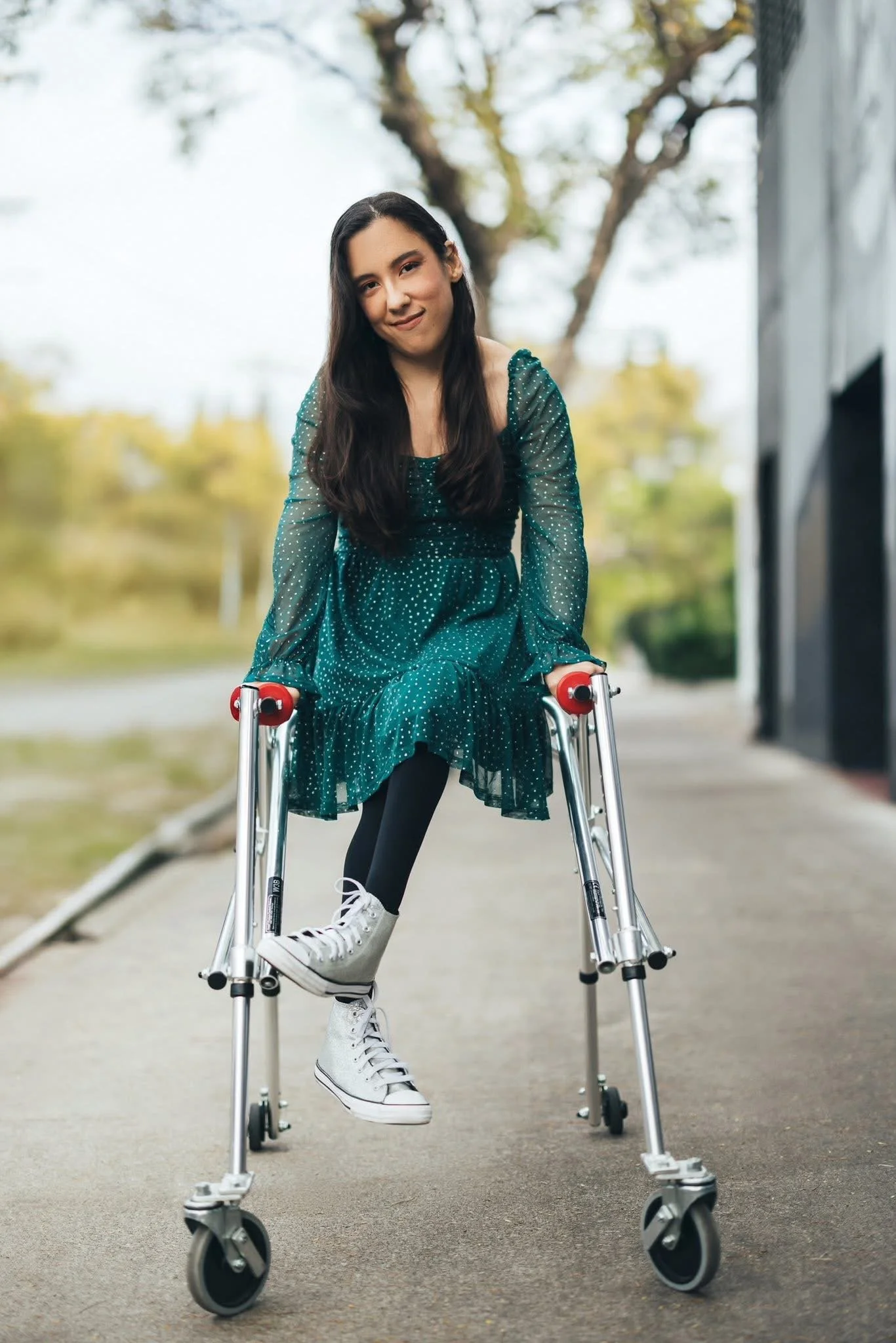 Collaborating with different photographers started in 2022. Abigail Gorden was my third fashion content collab, and she was amazing to work with. What started my fashion content journey was when I accidentally went viral on social media with a reel with an audio “ Pretty Girls Walk Like This” of me walking in my walker with a Guess sweatshirt. That’s when Fashion Content originally started from there. I loved doing photoshoots after my experience with Best Buddies. I met Abigail in 2023. We stayed in contact, and I then reached out to her to do a photoshoot in LA, and she believed in my passion project of “ Making Cerebral Palsy Beautiful” and was behind me 100%. What began the whole journey was wanting to showcase CP in a fashionista way to help young girls feel confident with their disabilities. I hope to do more modeling in the future with clothing brands, bringing awareness of disability representation.