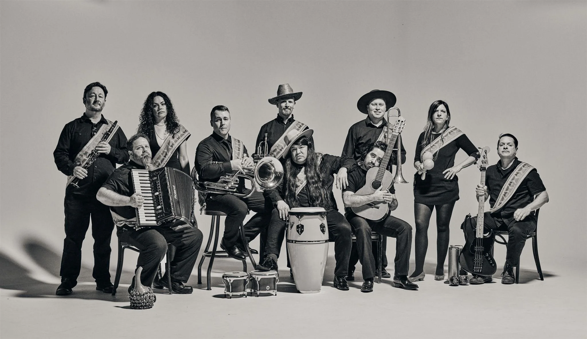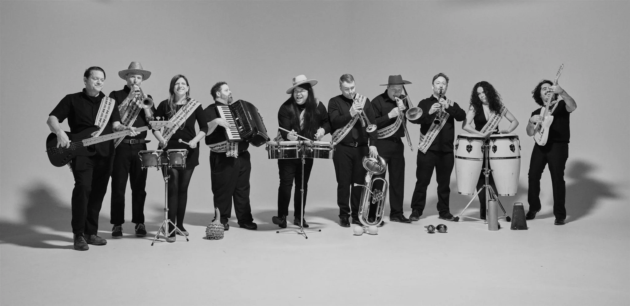 About seventeen years ago, I started a DJ night called Double Platinum Latinum with Carlos Segovia, focusing on Latin music, specifically Cumbia. I grew up in Los Angeles, and moved to Portland in '99. The lack of diversity I felt upon arriving here in Portland really made me miss my culture. The events were quite well received, and we thought, "what if we start a Cumbia dance band here in Portland?!" That was in 2012. Over the years, we have honed our sound to a unique niche of psychedelic Northwest style Cumbias.